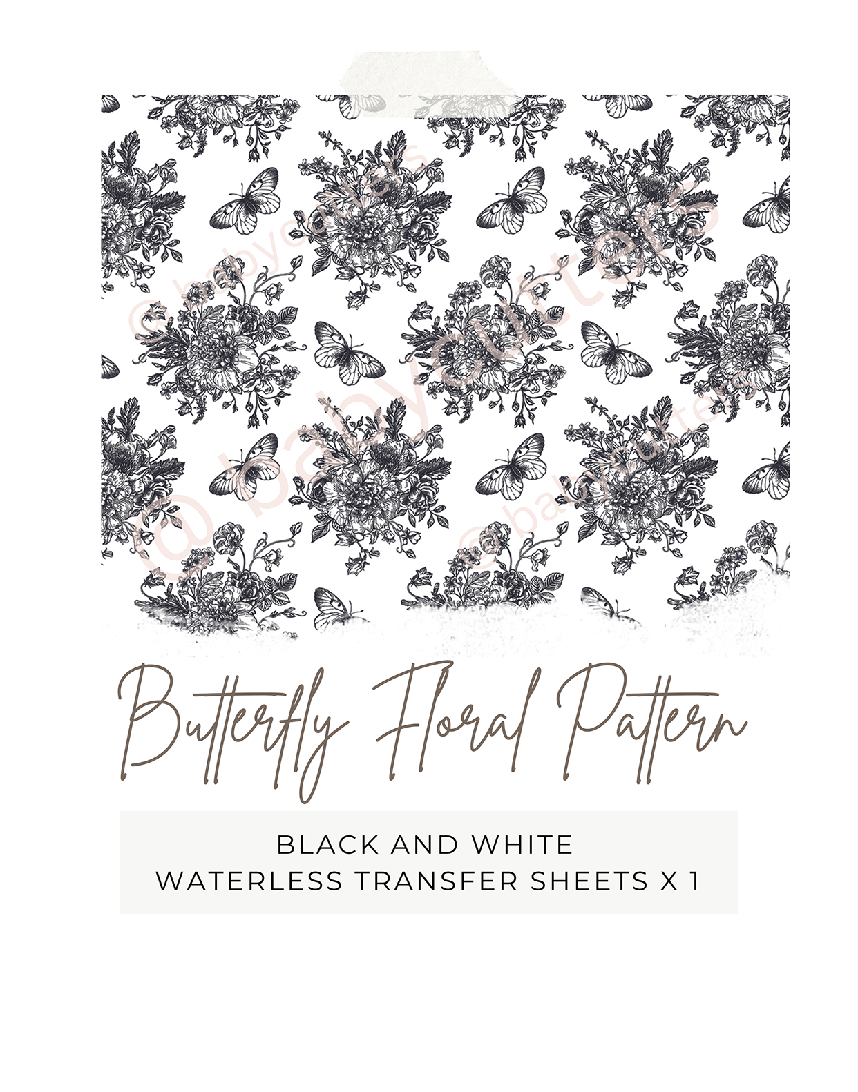 Black and White Waterless Image Transfer Paper / Butterfly Floral Pattern