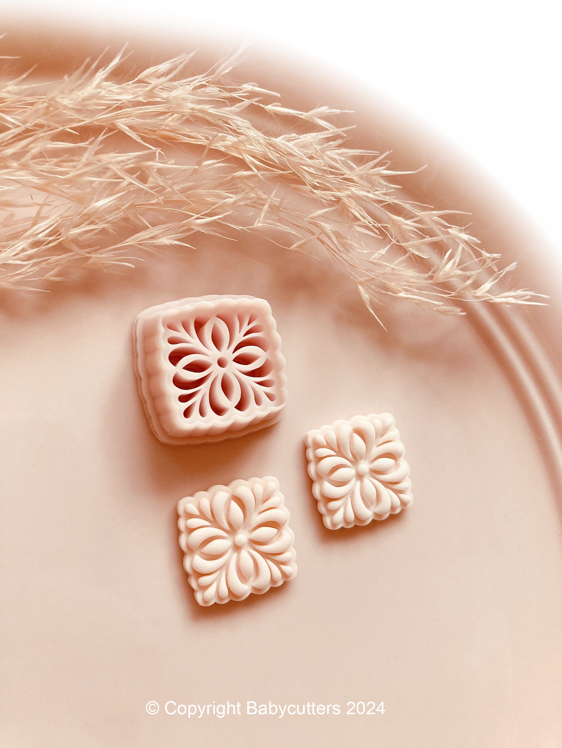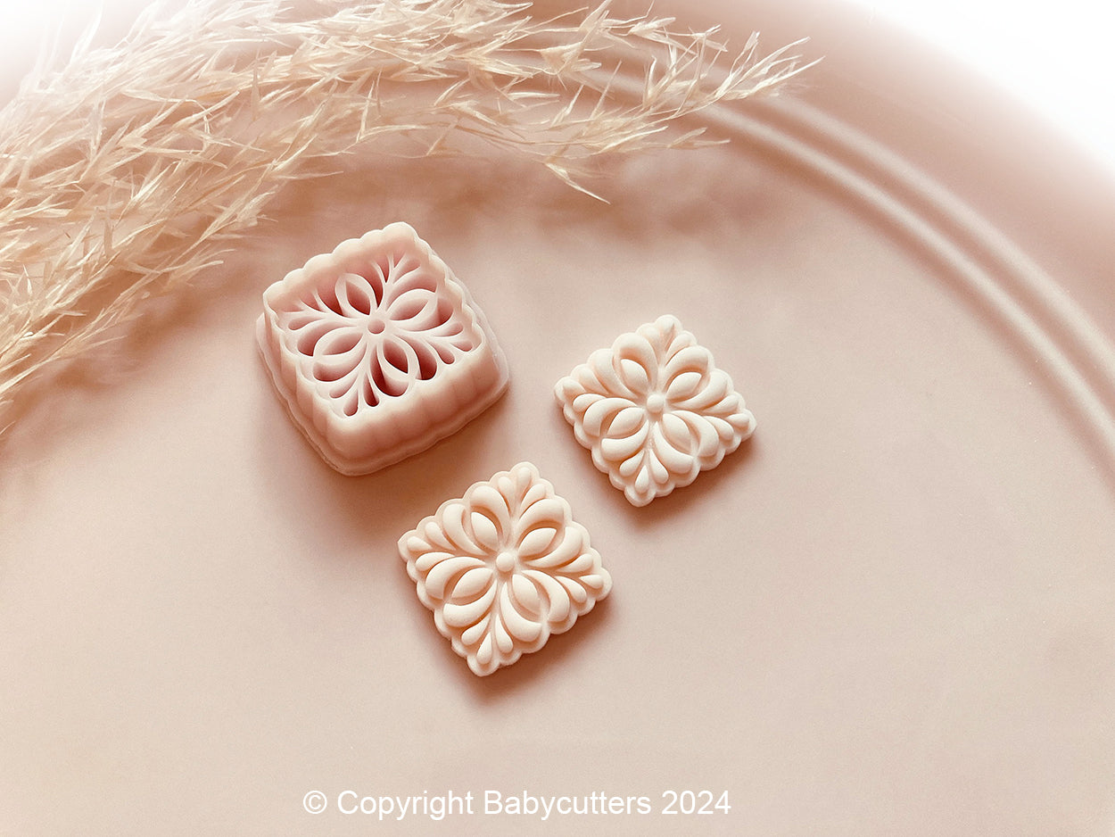 Embossed Flower Square Pattern Shape Polymer Clay Jewellery Cutter